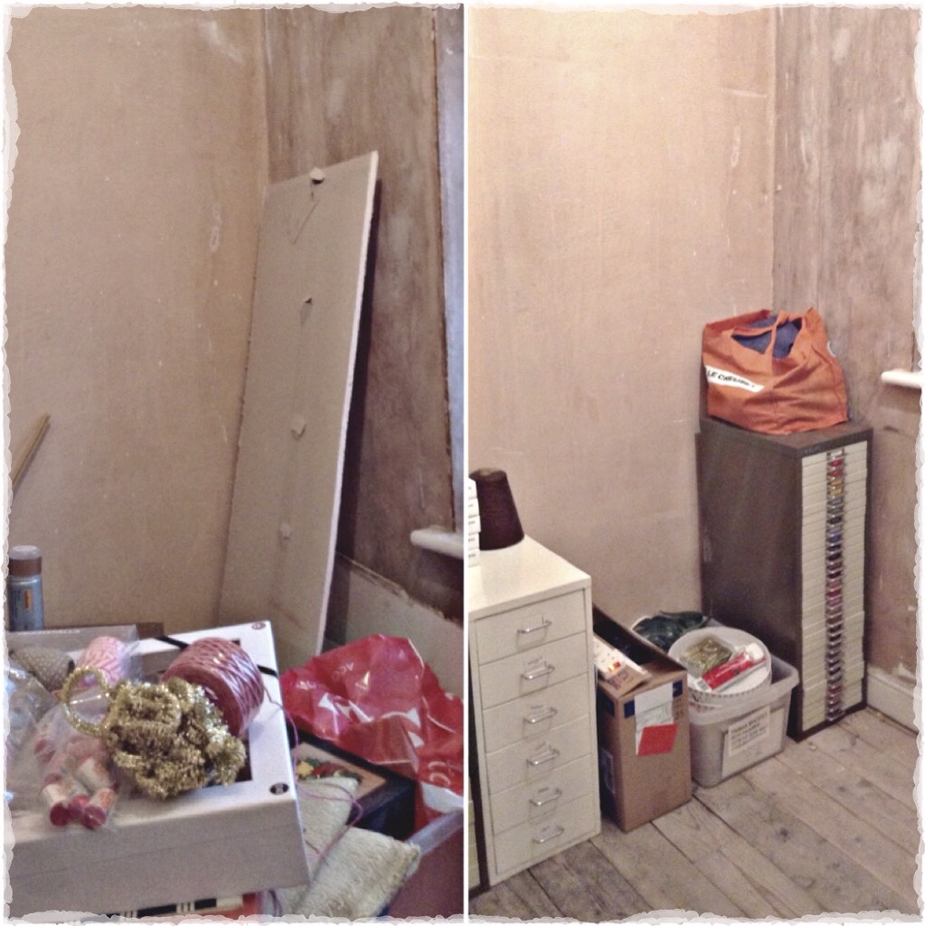 Eventually we reached blank canvas stage and we (I) began planning. Due to my frankly ridiculous hoards of stationery, ribbon, washi tape, beads & random other sparkly tat, storage needs were key. The first issue was that the weak stud wall meant I couldn’t have the shelves I’d anticipated, boo, so the rest of the room needed to work extra-hard.