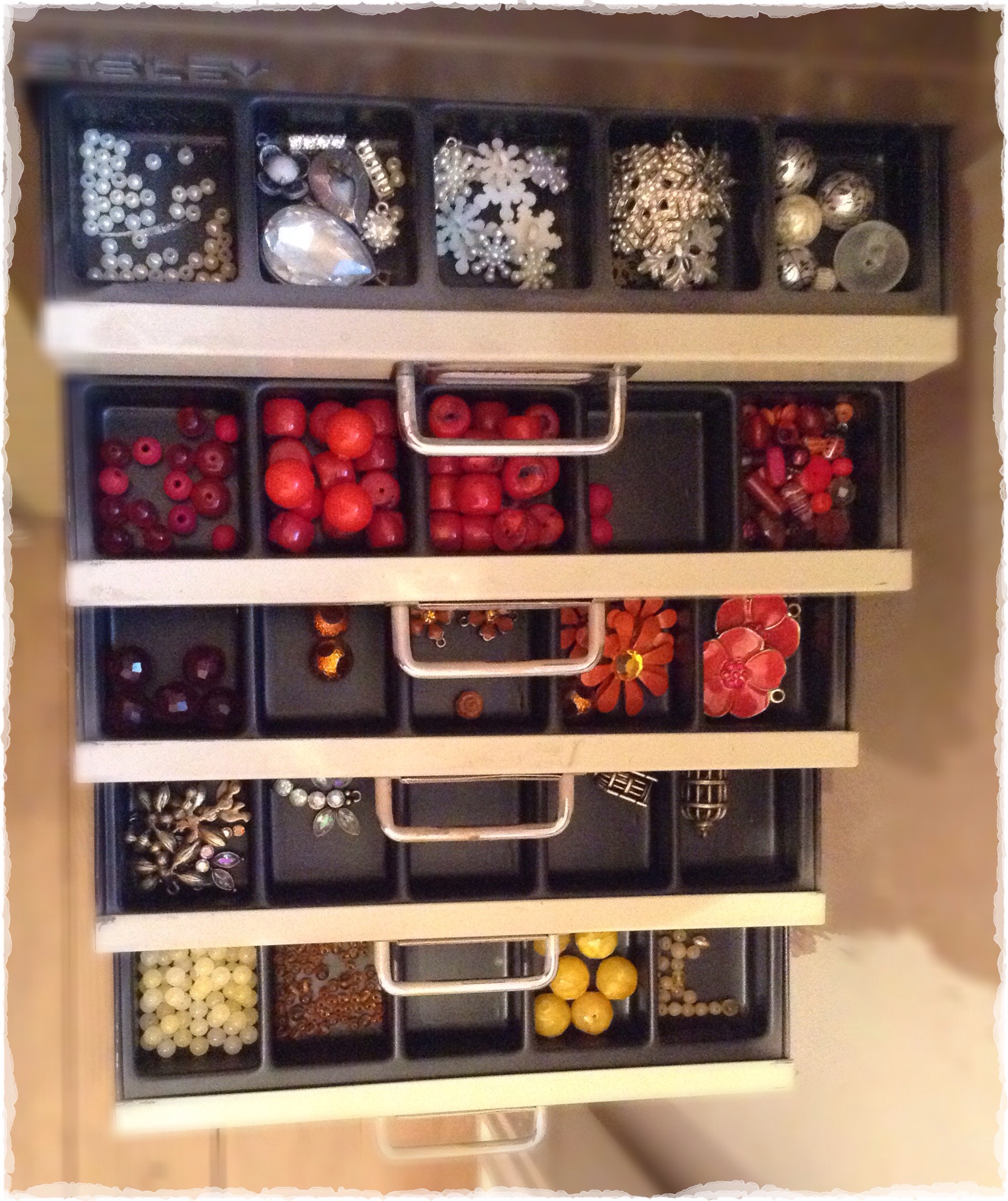 I’ve been able to squeeze most stuff onto the adjustable shelves in my numerous jars and storage boxes and it looks pretty good. After having all of this sprinkled throughout the house for so long, it’s rather luxurious to have it all in one place & I’m already finding that I’m enjoying doing more ‘projects’.