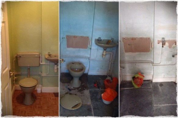 This is it as we moved in, believe it or not it got even worse. Once the lino was lifted and it became a hub for paint pots and jars of white spirit. I had visions of a rather grand Victorian cloakroom, high level cistern and metro tiles, but a weekend spent in an apartment in Stokholm gave us an different idea…